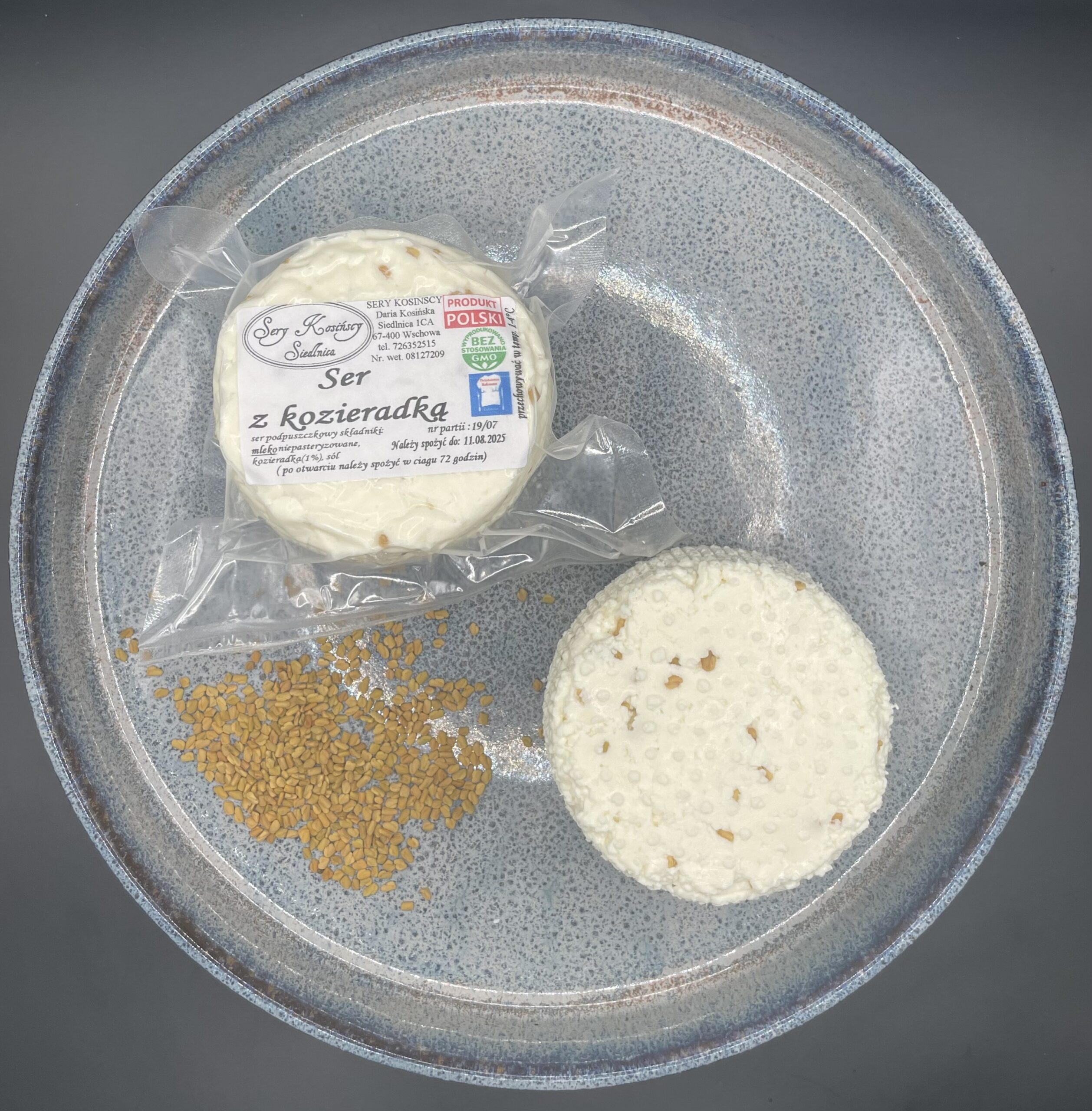 Składniki: mleko niepasteryzowane, sól, kozieradka, podpuszczka mikrobiologiczna.