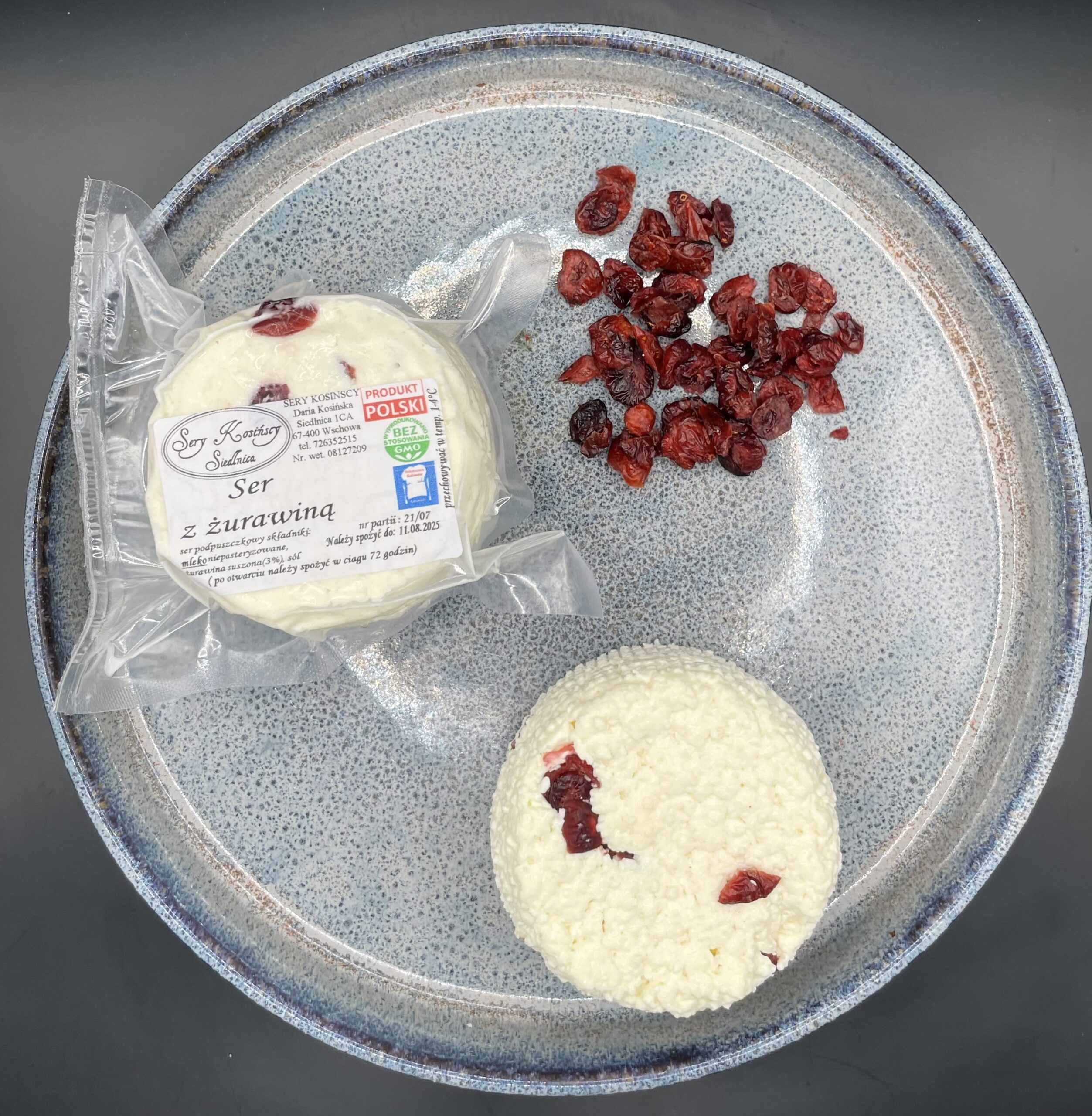 Składniki: mleko niepasteryzowane, sól, żurawina suszona, podpuszczka mikrobiologiczna.